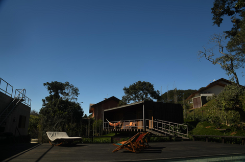 Não à toa, o projeto assinado pelo arquiteto Gui Paoliello abusou dos janelões e das portas de vidro para dar vida a este refúgio que ocupa um amplo terreno dentro de um condomínio. E, para garantir o clima de privacidade, a propriedade foi dividida em blocos.