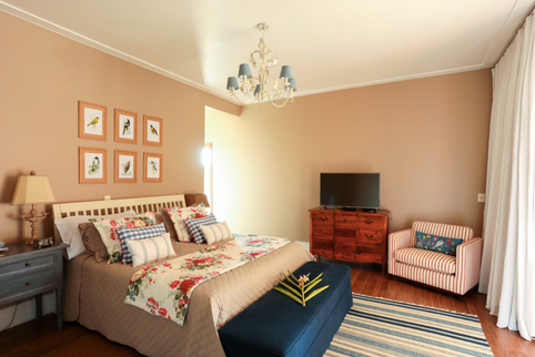 No andar de cima, são cinco suítes impecáveis, incluindo a master que tem um terraço cercado por plantas que mais parece um jardim encantado. Para completar, o staff super bem treinado – arrumadeira, cozinheira e caseiro – cuidam de todos os detalhes para dias de pleno sossego.